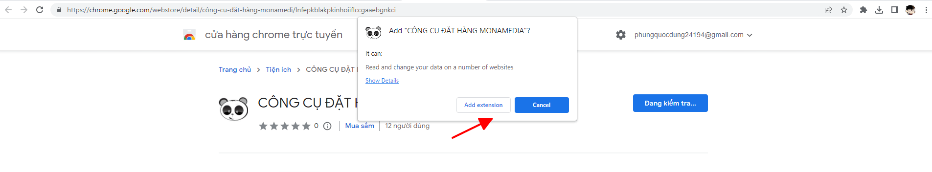 Bước 3: Nhấn vào nút: "Add extension"- Thêm tiện ích để kết thúc quá trình cài đặt công cụ.