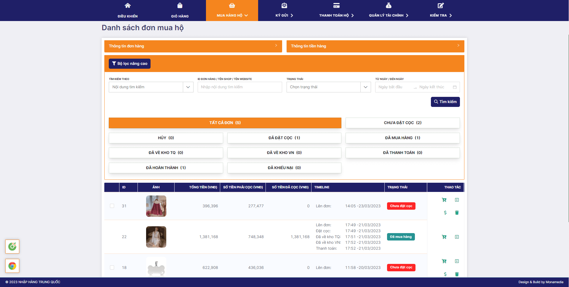 Sau khi đã đặt cọc thành công, chúng tôi sẽ duyệt đơn hàng và tiến hàng mua hàng, vận chuyển hàng Trung Quốc về Việt Nam. Sẽ có nhân viên CSKH liên hệ lại để xác nhận đơn cho quý khách. Hành trình đơn hàng sẽ được cập nhật liên tục trên hệ thống, quý khách có thể truy cập vào tài khoản của mình để kiểm tra.